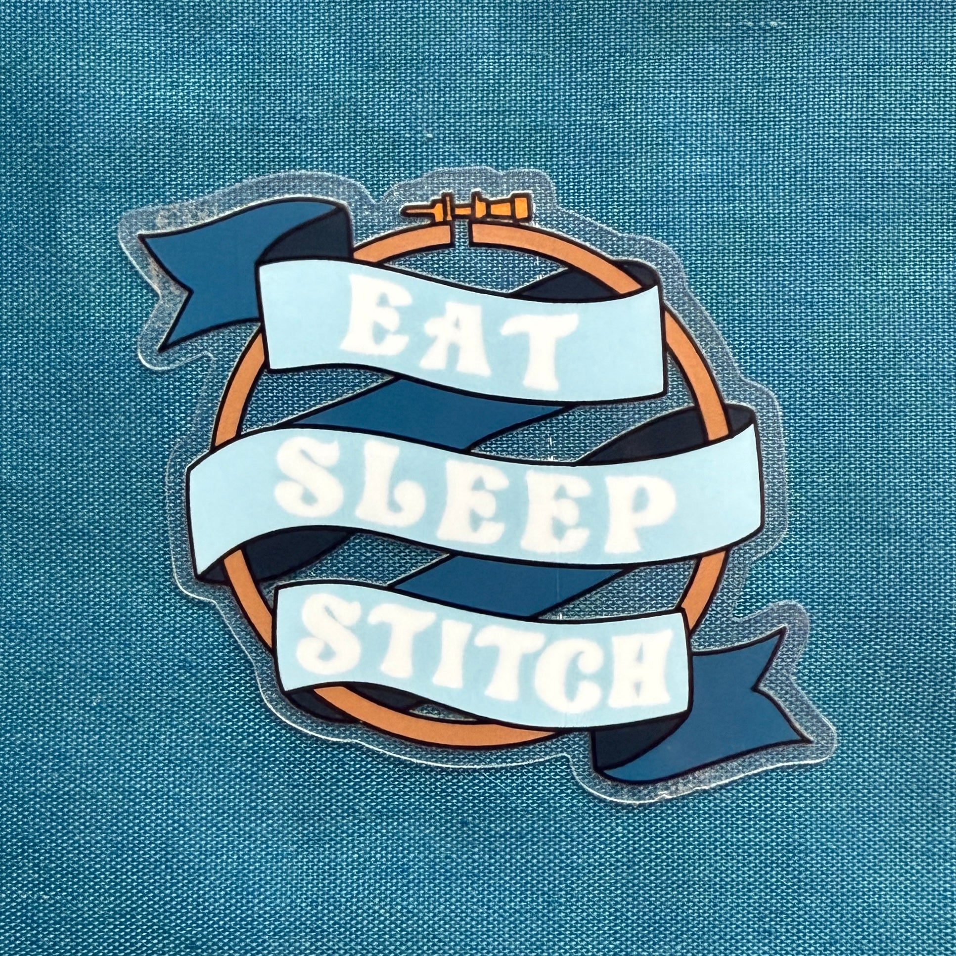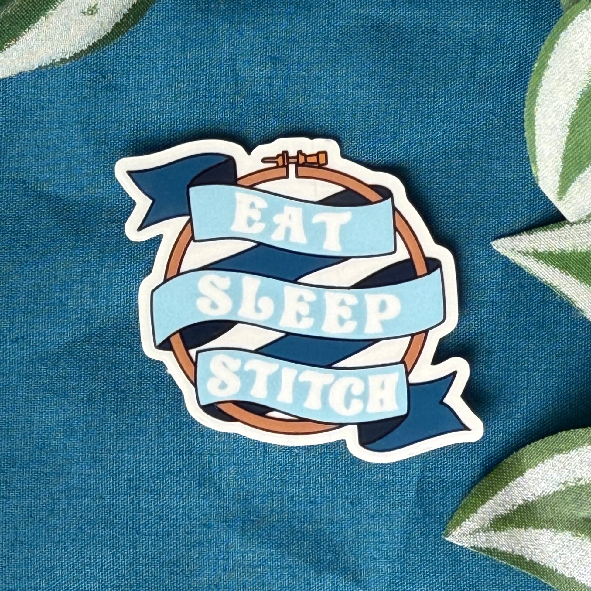 Are you as passionate about embroidery as we are? Longing for days filled with nothing but stitching (and eating) bliss? Show your dedication to the craft with our "Eat Sleep Stitch" banner sticker, complete with an embroidery hoop to really get the message across.