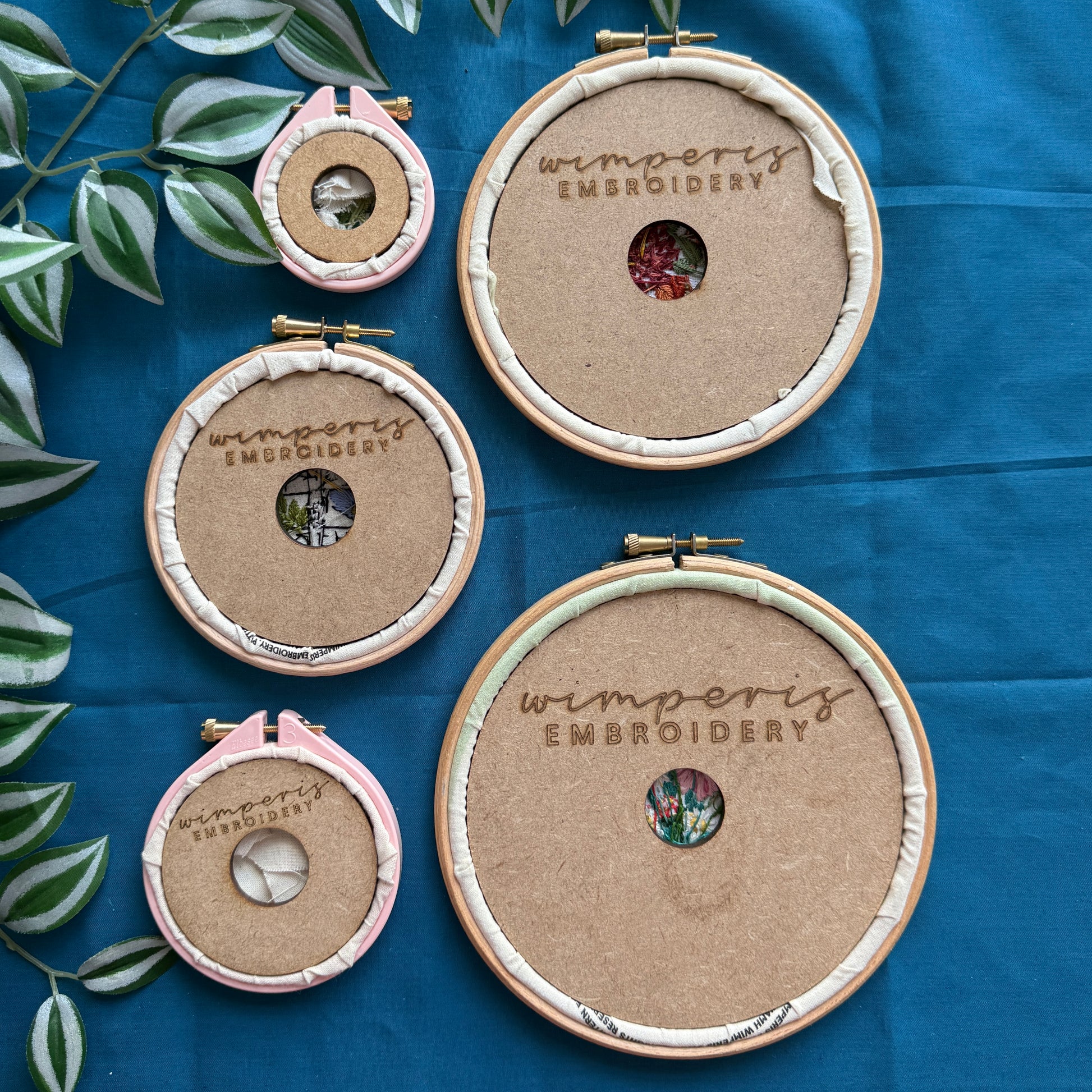 Created to fit the Elbesee hoops used in our kits and available via our haberdashery. We can’t guarantee that they will fit any other kind of hoop.