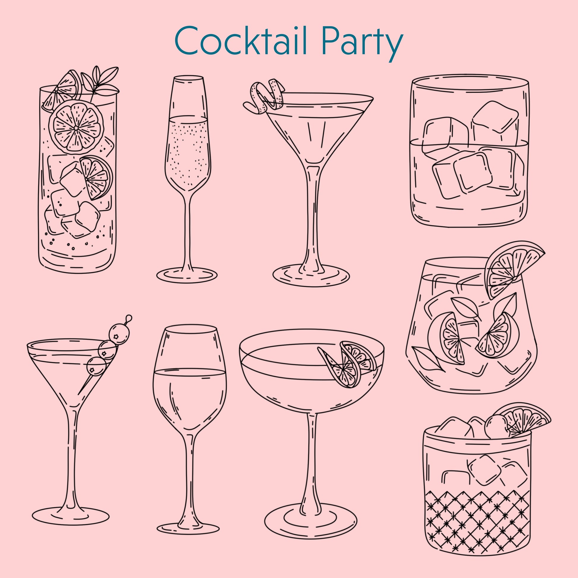 The designs featured in this pack are: various different glass styles with drinks in them.